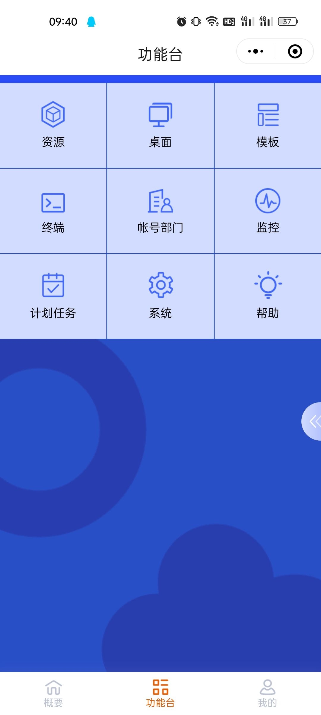 1、進(jìn)入小程序后,點(diǎn)擊『功能臺(tái)』→【資源】界面,點(diǎn)擊頂部切換【資源池管理】界面;