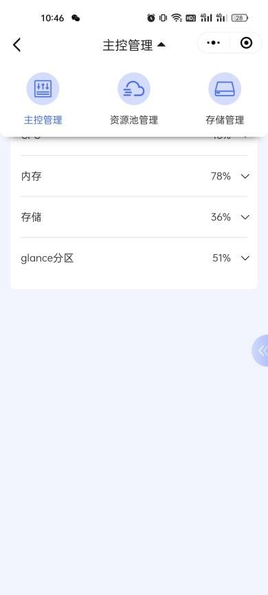 1、查看主控服務(wù)器的CPU、內(nèi)存、存儲(chǔ)、glance分區(qū)使用詳情;