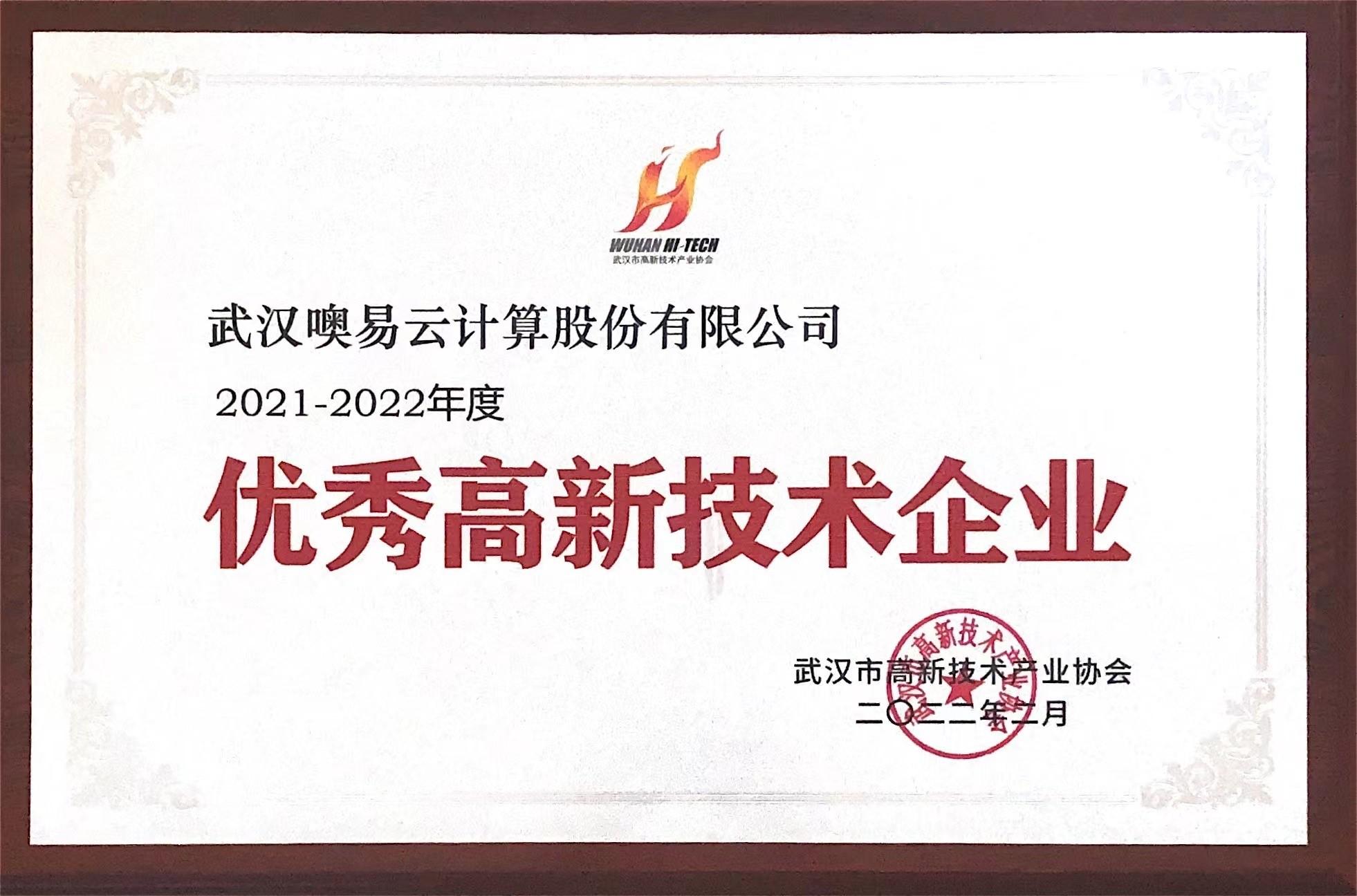 近日,武漢市高新技術產業協會公示了“2021-2022年度年武漢市優秀高新技術企業名單”,遴選出一批創新能力突出、量質齊升、發展迅速的優秀高新技術企業。武漢噢易云計算股份有限公司憑借強勁的發展勢頭和企業綜合實力連續兩年榮獲武漢市優秀高新技術企業。