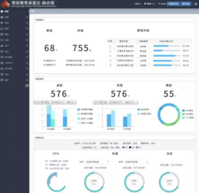 噢易云基于場景選型的理念,創(chuàng)新提出VOI、VDI融合方案。1360點云終端采用VDI架構(gòu),168點新購PC和430點利舊PC采用VOI架構(gòu)。實現(xiàn)一個平臺融合統(tǒng)一管理,滿足不同場景的個性化桌面需求。