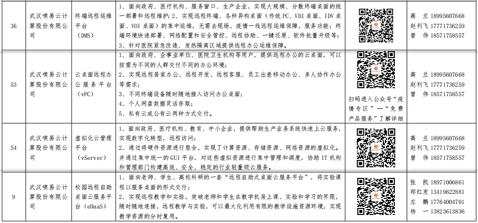 2020年2月27日湖北省經濟和信息化廳公示了 《省經信廳辦公室關于公布第三批免費云產品和服務目錄的通知》,其中 噢易云的校園遠程自助桌面云服務(eDaaS)、終端遠程運維平臺(DMS)、 云桌面 遠程辦公服務平臺(vPC)、虛擬化云管理平臺(vServer)四款產品在全國數千家優秀企業中脫穎而出,成功入選!