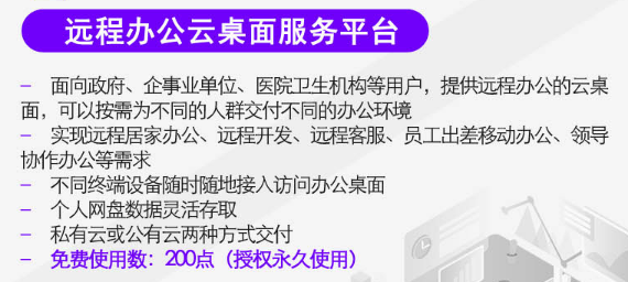 1) 面向政府、企事業單位、醫院衛生機構等用戶,提供遠程辦公的云桌面,可以按需為不同的人群交付不同的辦公環境;