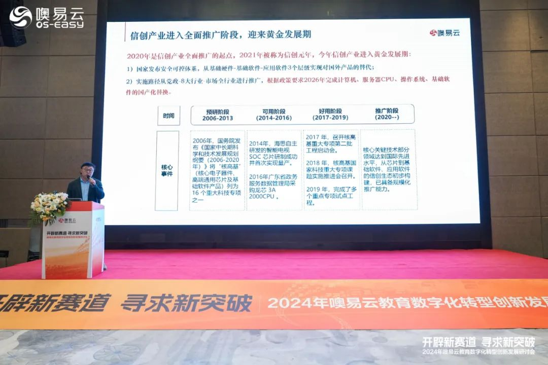 噢易云信創(chuàng)市場總監(jiān)楊一進行《信創(chuàng)浪潮下高等教育數(shù)字化轉(zhuǎn)型和產(chǎn)教融合建設》主題分享(圖)