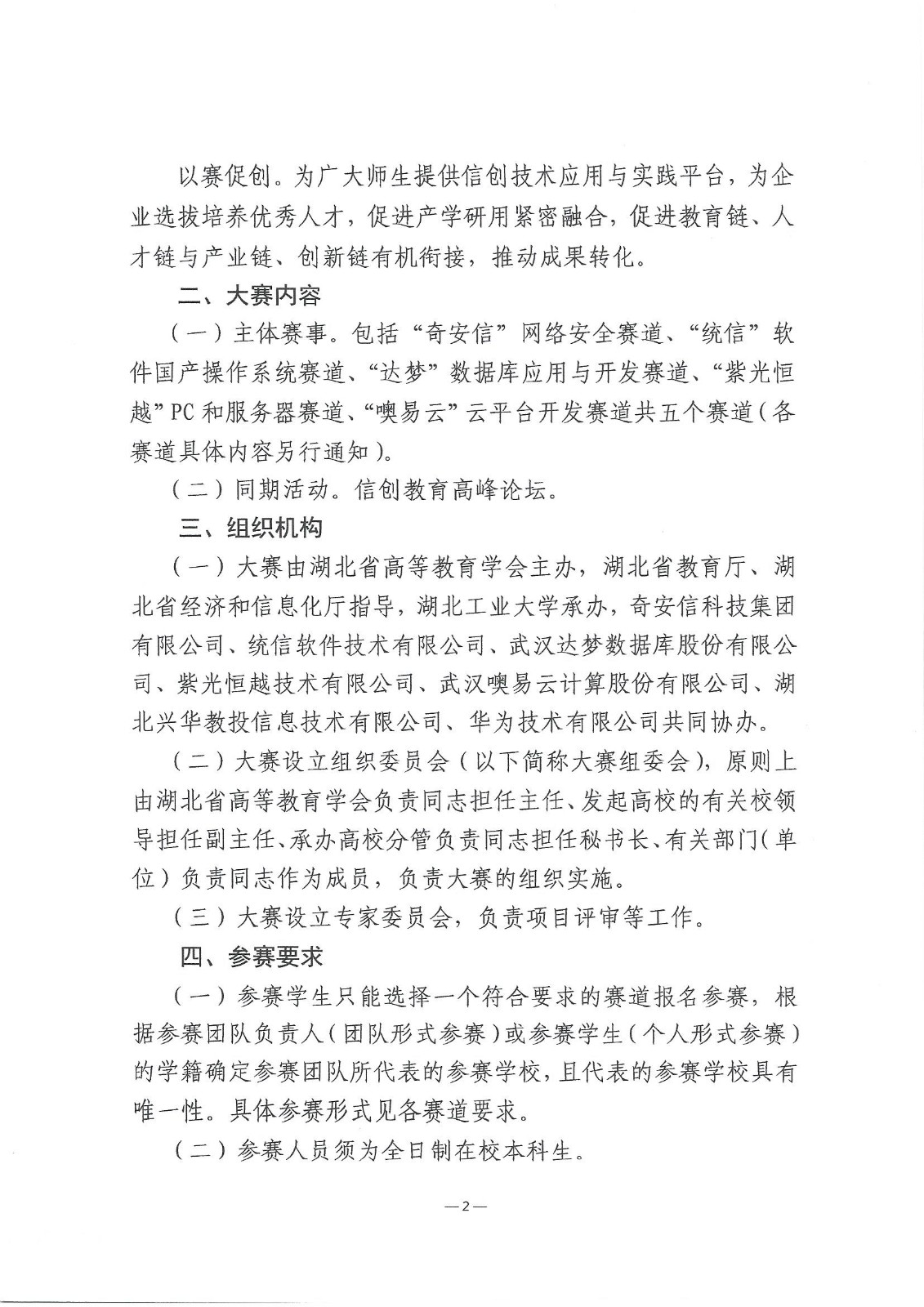 關(guān)于舉辦第二屆湖北省大學(xué)生信創(chuàng)大賽的通知