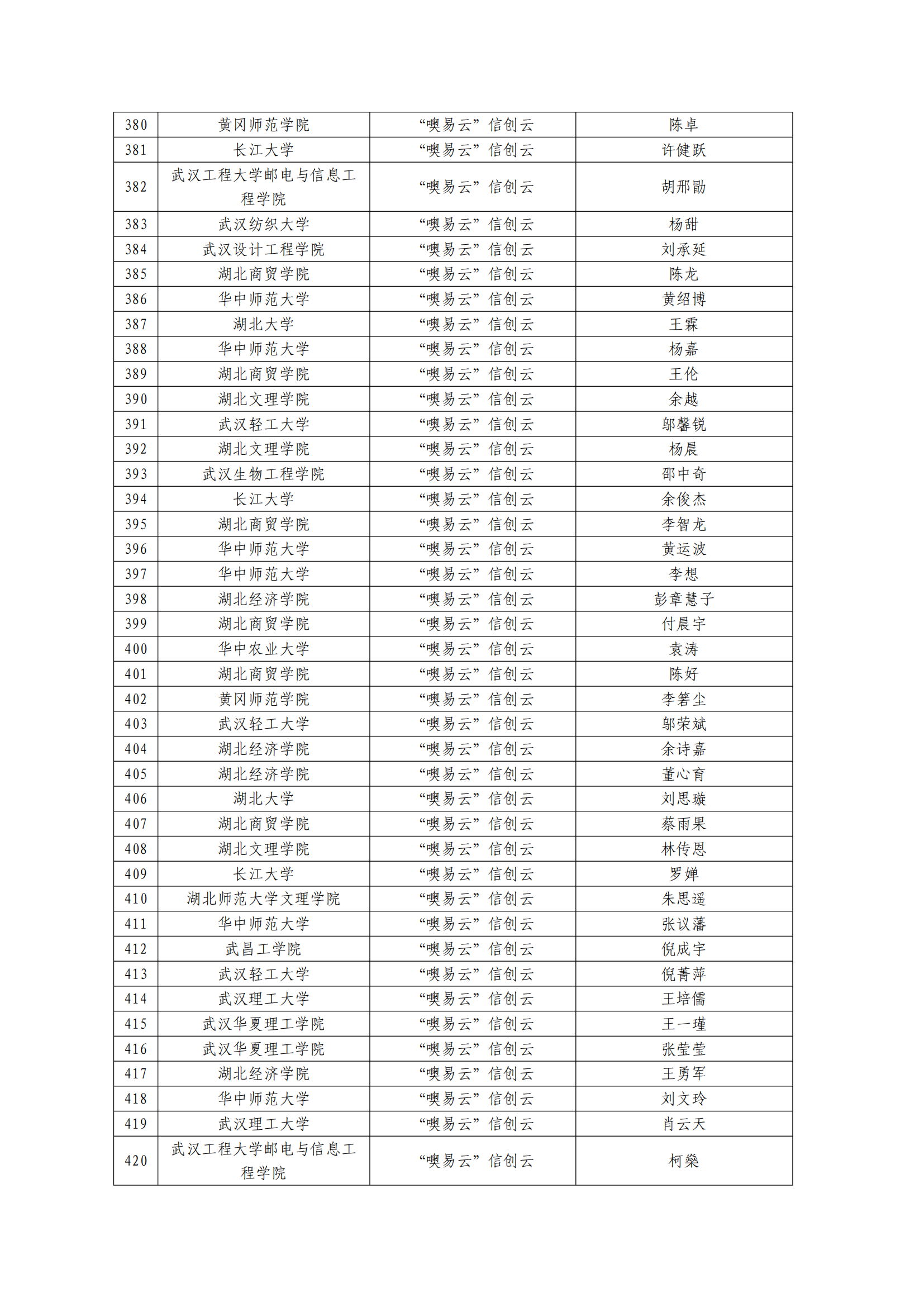 關(guān)于對(duì)第三屆湖北省大學(xué)生信創(chuàng)大賽獲獎(jiǎng)名單進(jìn)行公示的通知(第5號(hào))