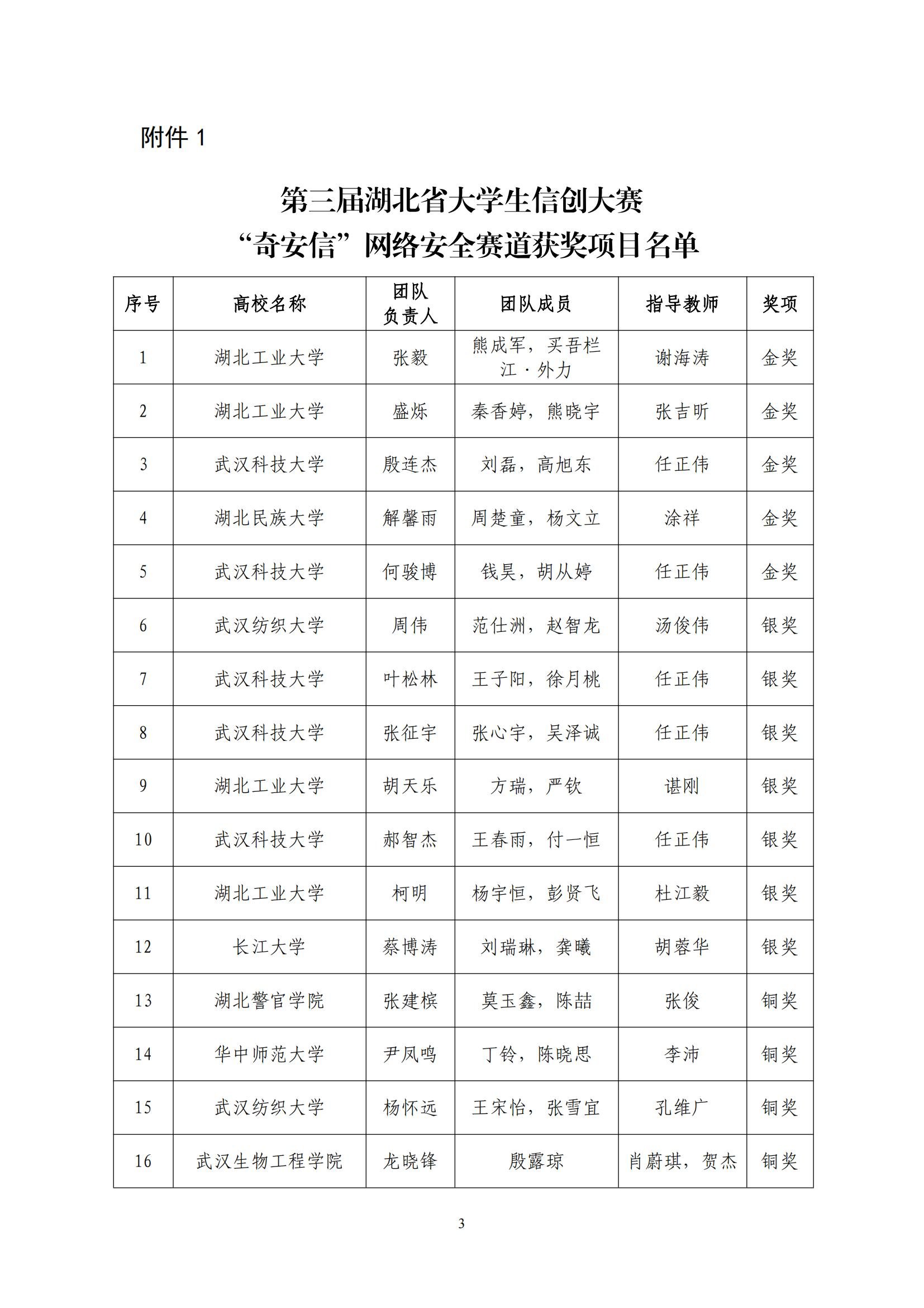 關于對第三屆湖北省大學生信創(chuàng)大賽獲獎名單進行公示的通知(第5號)