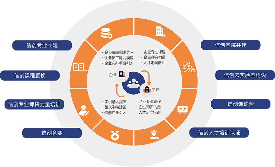 噢易云依托自身強大的技術(shù)實力,以及廣泛的高校校企合作客戶資源,并聯(lián)手信創(chuàng)生態(tài)合作伙伴為高校量身打造完整的信創(chuàng)人才培養(yǎng)體系,提供基于信創(chuàng)云平臺的教學(xué)實訓(xùn)方案;采用校企聯(lián)合方式,構(gòu)建“產(chǎn)、學(xué)、研、用”?體化協(xié)同教學(xué)模式,以信創(chuàng)產(chǎn)業(yè)發(fā)展的新趨勢、新需求為導(dǎo)向,從企業(yè)崗位需求出發(fā),共同培養(yǎng)信創(chuàng)產(chǎn)業(yè)亟需的綜合性高素質(zhì)人才。