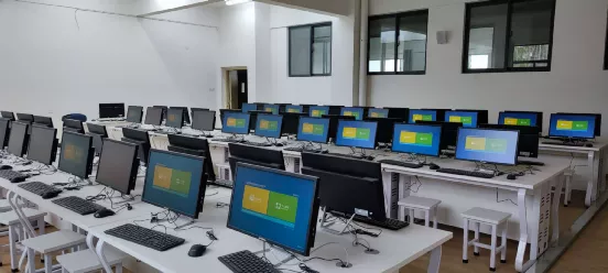 三間計算機公共機房均配備多媒體廣播教學軟件,實現屏幕廣播、視頻廣播、文件傳輸,電子點名、黑屏肅靜等教學互動,并與桌面云軟件深度融合,老師可直接通過多媒體教學軟件切換虛擬桌面系統(tǒng)環(huán)境。
