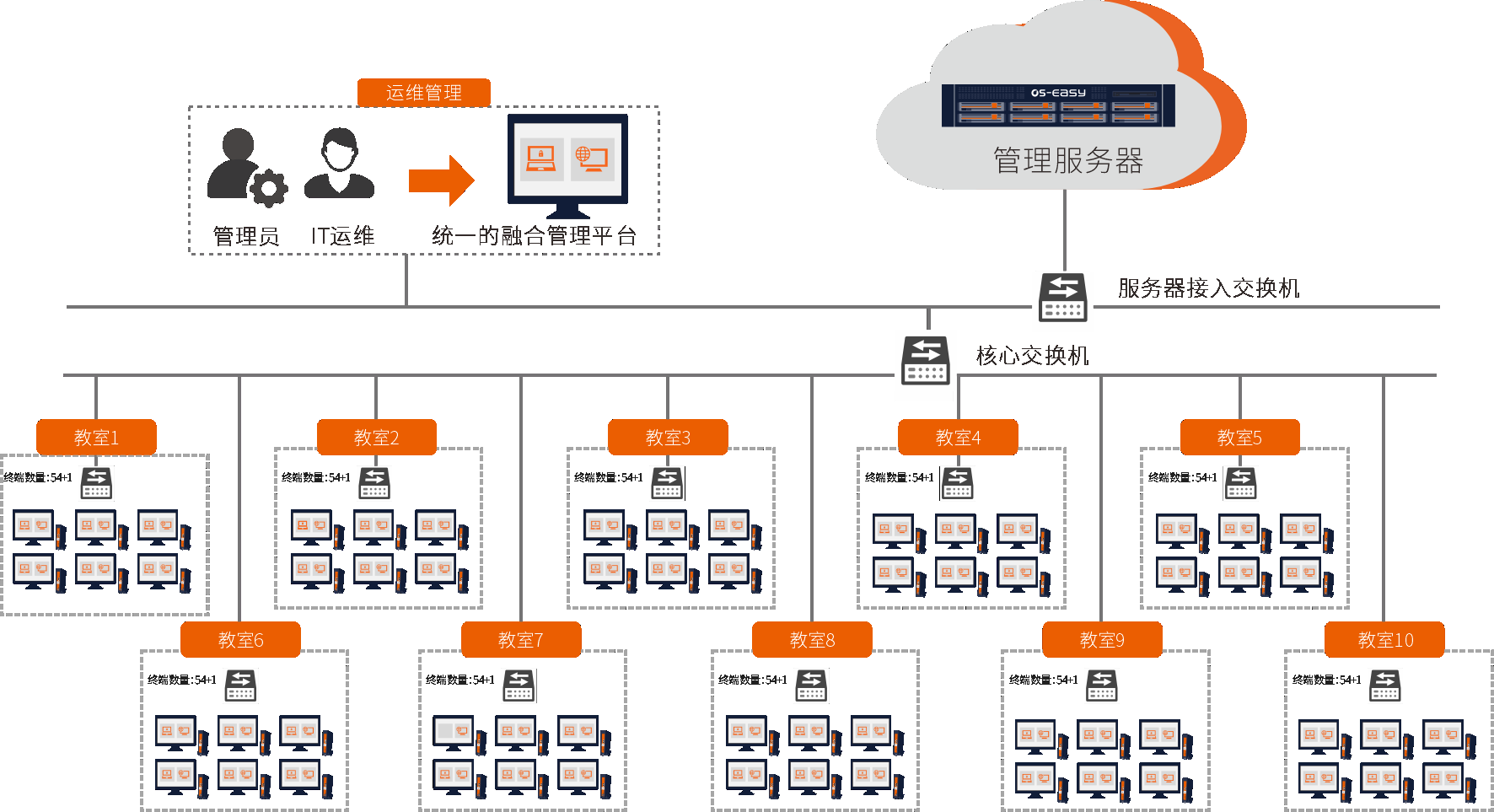 - 輕松實現(xiàn)10間微機室的統(tǒng)一管理維護,實現(xiàn)標準流程化管理