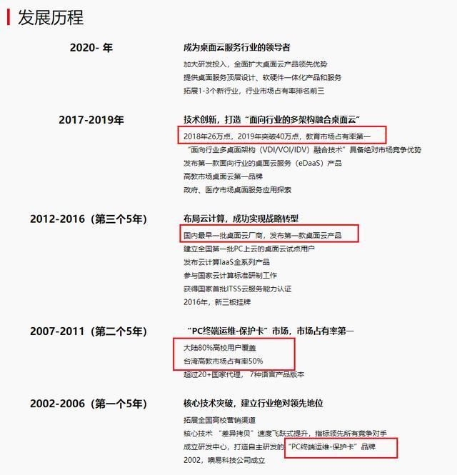 然后從2012年與時(shí)俱進(jìn),轉(zhuǎn)型桌面云,依然是服務(wù)高校。因?yàn)橛幸郧暗纳詈穹e累,很快就在教育市場(chǎng)打開了居民,在2019年桌面云的教育市場(chǎng)做到了第一。