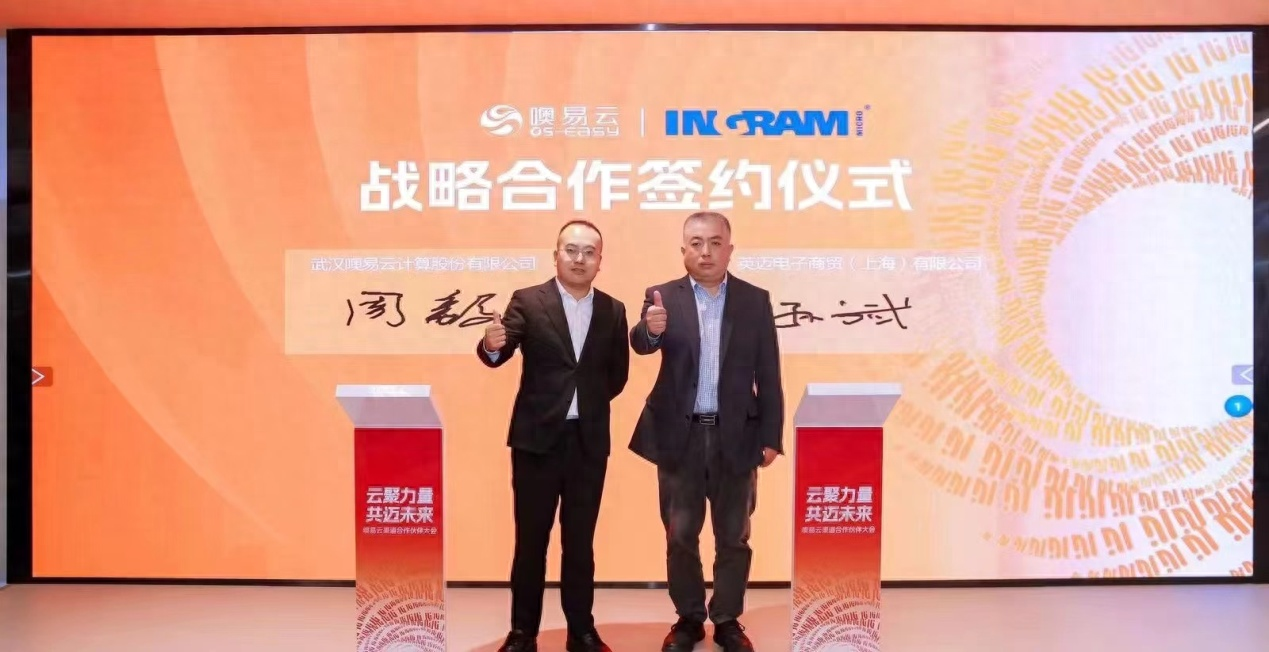 3月29日,噢易云與跨國(guó)公司英邁電子商貿(mào)(上海)有限公司在湖北武漢舉行全面戰(zhàn)略合作簽約儀式。英邁中國(guó)執(zhí)行副總裁孫斌,噢易云副總裁朱鵬、副總裁周毅出席簽約儀式,近100名出席噢易云渠道合作伙伴大會(huì)的經(jīng)銷商一同見(jiàn)證了強(qiáng)強(qiáng)聯(lián)手的“高光時(shí)刻”。