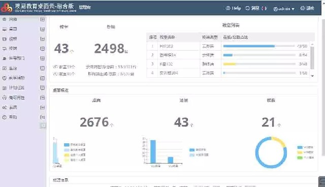 部署了VDI模板、VOI模板及個人模板共計21個,覆蓋43個場景,供2498個終端使用