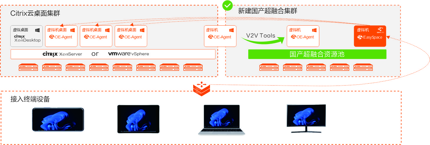 替換思杰Citrix的云桌面平臺(tái),支持對(duì)接多種類型的底層云平臺(tái)(XenServer,Vmware)用戶無(wú)需更換現(xiàn)有底層虛擬化云平臺(tái),只需更換協(xié)議,即可快速上云。